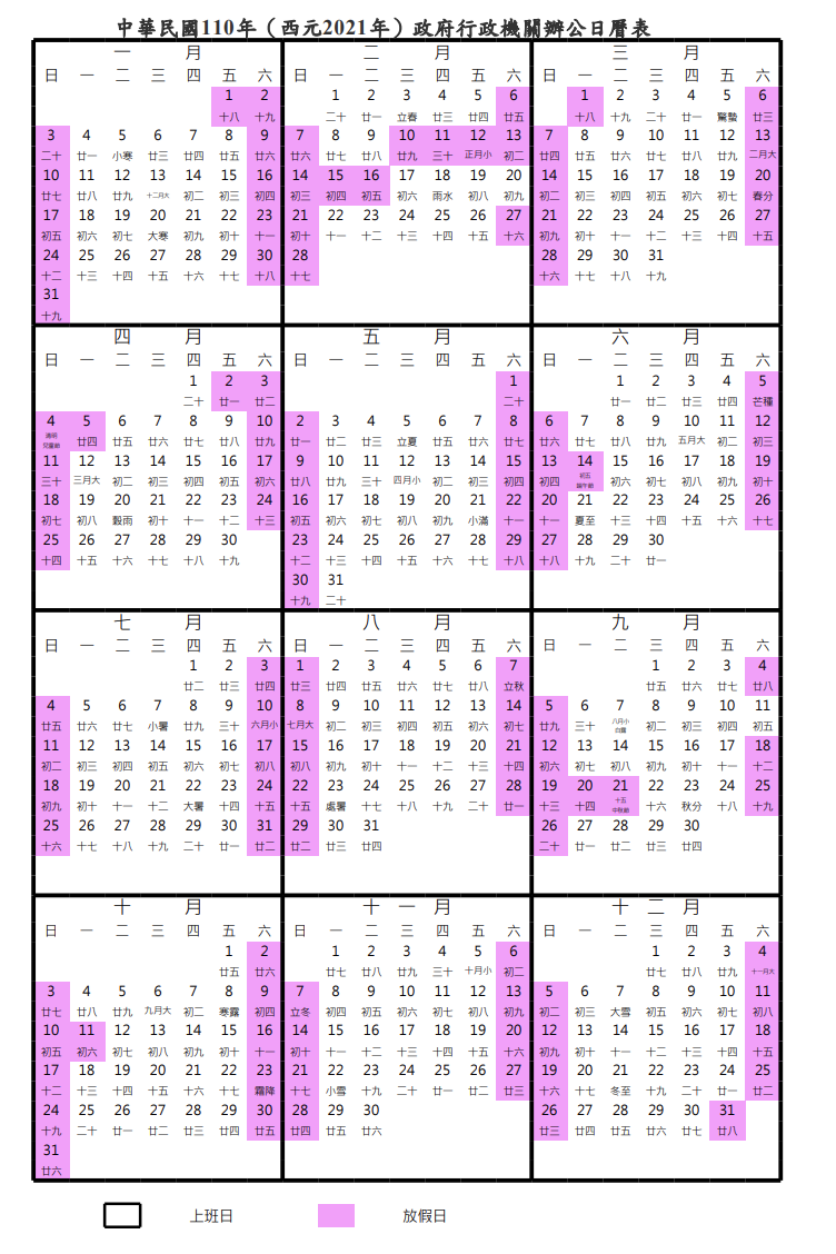 ▼2.國定假日與休假:目前西元2021年的行事曆已經公布,這份明年的行事曆是以公務機關出勤狀況為主訂定。而勞工們的節日「51勞動節」明年正好落在週六,勞動部指出其為《勞基法》定義中的「國定假日」,雇主應依法給予有薪假;而適逢勞工例假或休息日,則必須依法安排補休。若雇主徵得該勞工同意於補休日出勤,工資應加倍!大家不用害怕放不到假啦!