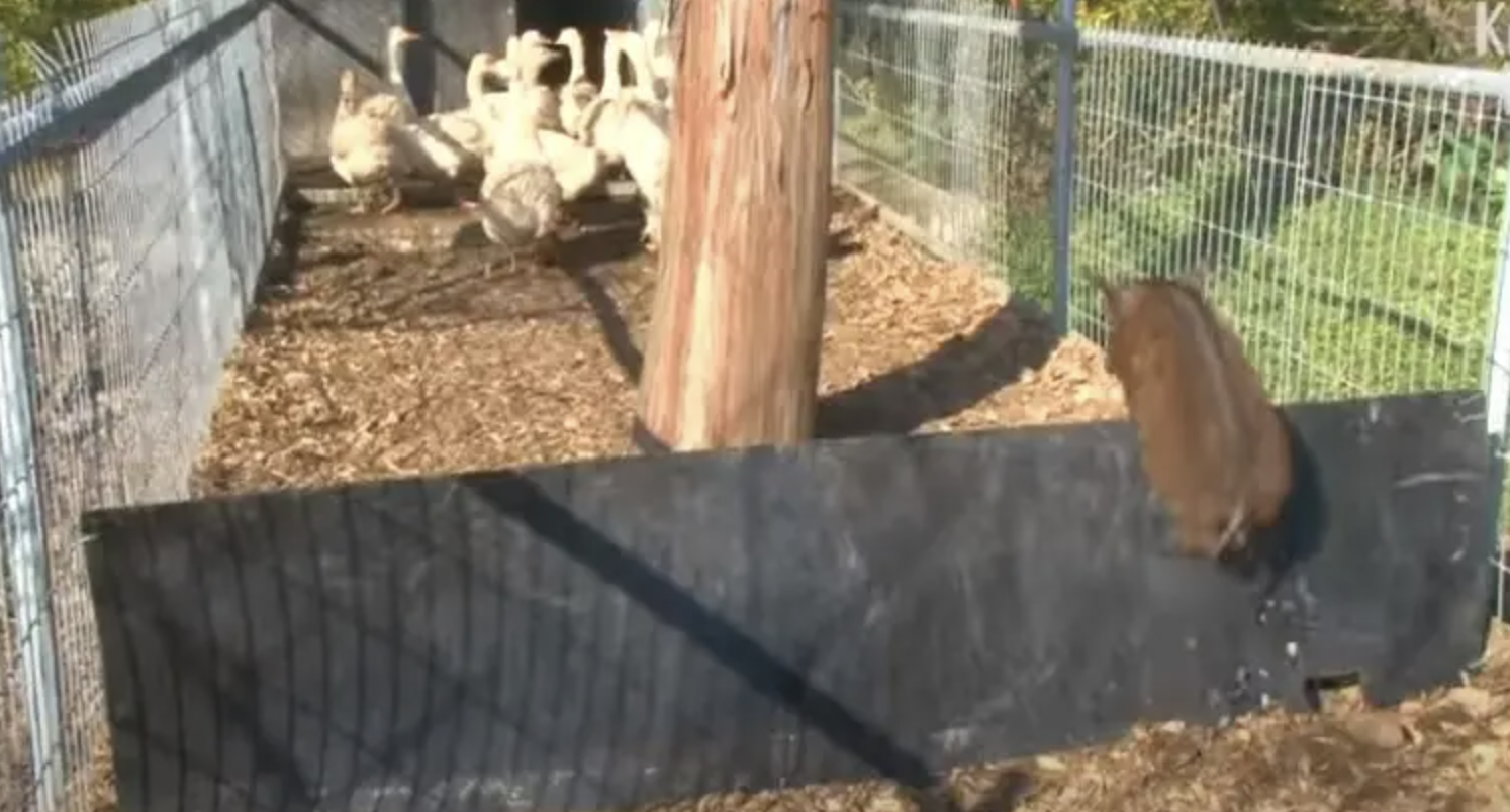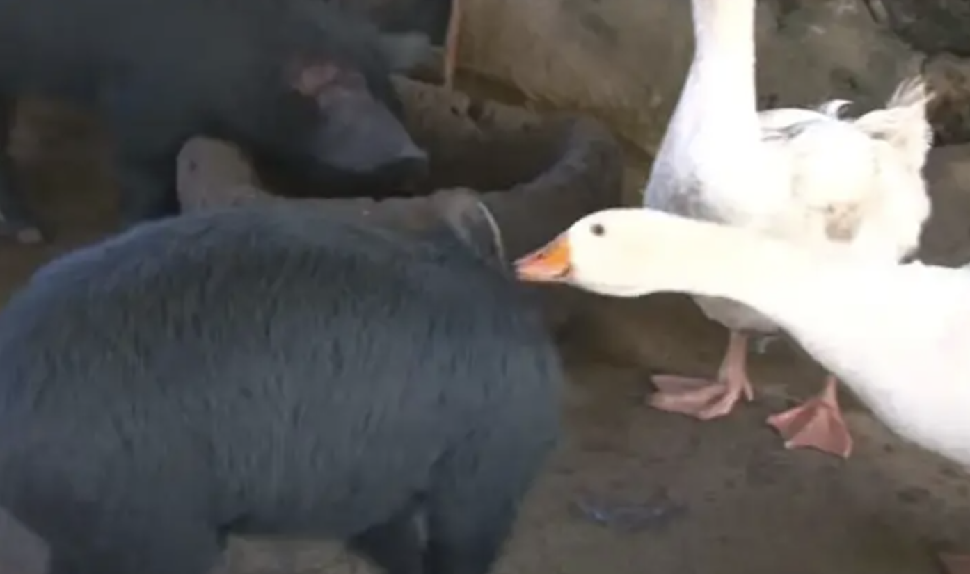 ▼大鵝們把Naldol當成鵝寶寶看待,非常保護祂。每當其他黑豬想要靠近Naldol,大鵝就會大聲喊叫警告,甚至主動「出手」,幫Naldol把黑豬趕走。