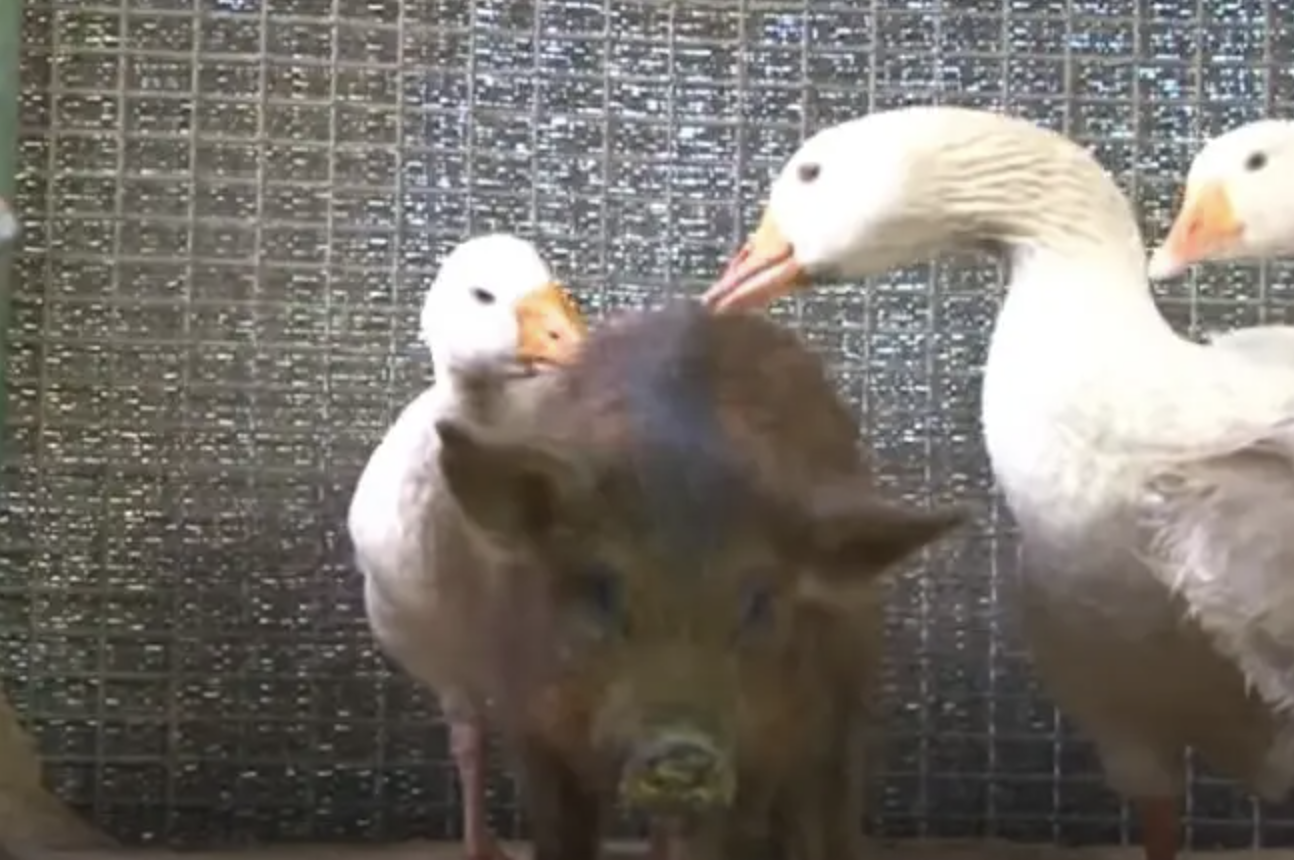 小豬「毛色不同」被排擠 遇見大鵝群反暖心接納:以後我們罩你!