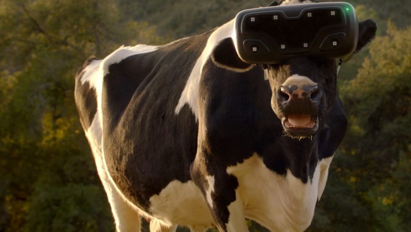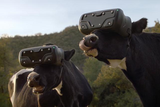 ▼俄羅斯科學家因為電影《駭客任務》而得到了啟發,開發出了一款乳牛專用的 VR 眼鏡,能夠讓戴上這款眼鏡的母牛看見「夏日一望無際的綠油油草原」,而不是俄羅斯寒冷、荒蕪的冬天。