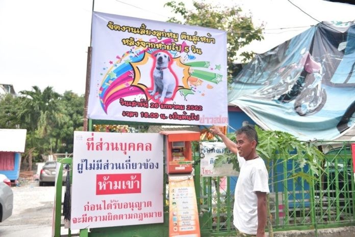 ▼鄰居在附近的街頭看到了Look Moo,連忙通知Boonsong。Boonsong放下手頭的事,用最快的速度趕到現場,果然找到了不見5天的狗狗。狗狗沒有受苦,身體狀況很好,Boonsong鬆了一口氣,決定辦流水席慶祝。