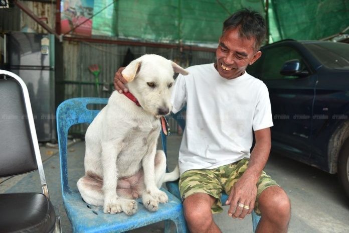 2020年12月11日對愛狗的人來說,狗狗就像家人一樣。泰國50歲阿伯Boonsong Meethao經營著一間停車場,他很有愛心,家裡有一隻十幾歲的母狗。2年前,這隻狗狗生下了一隻小狗,Boonsong把小狗當成自己的小孩,對牠非常好。