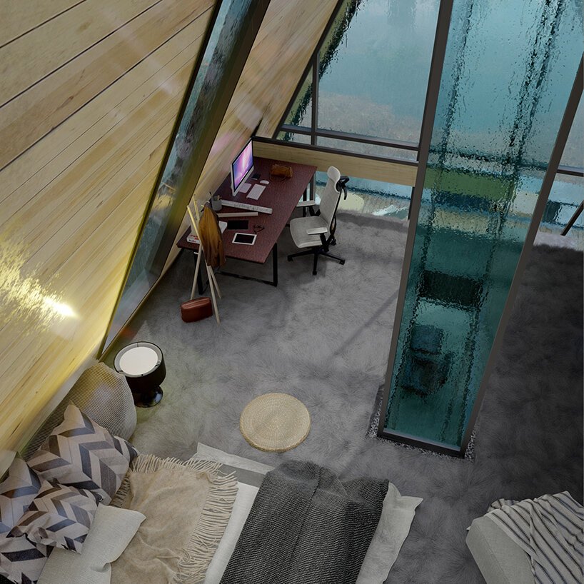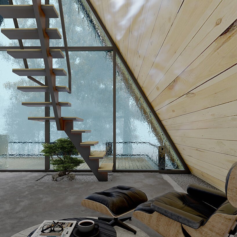 森林裡的亮點!絕美「A字玻璃綠建築」彷彿浮空 入內臥室景觀好絕