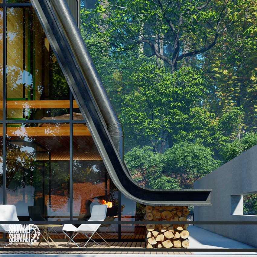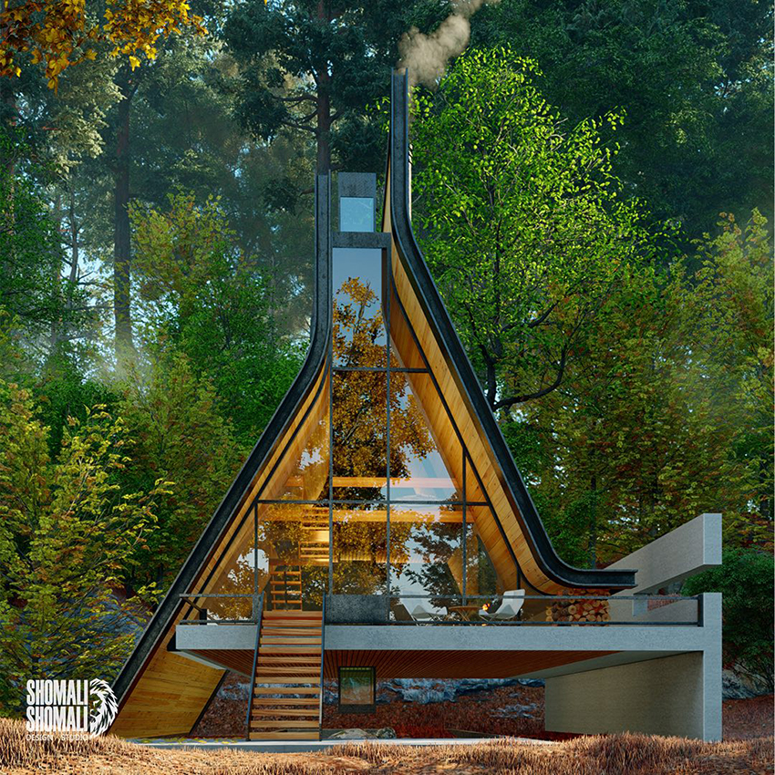 ▼這是伊朗設計團隊Shomali Design Studio的作品。他們在伊朗北部一處森林裡建造了一棟綠能概念小屋。 跟普通方方正正的房子不同,這棟小屋整體呈現A字型,採用大面積的玻璃材質,看起來充滿現代感,讓人一眼就愛上。