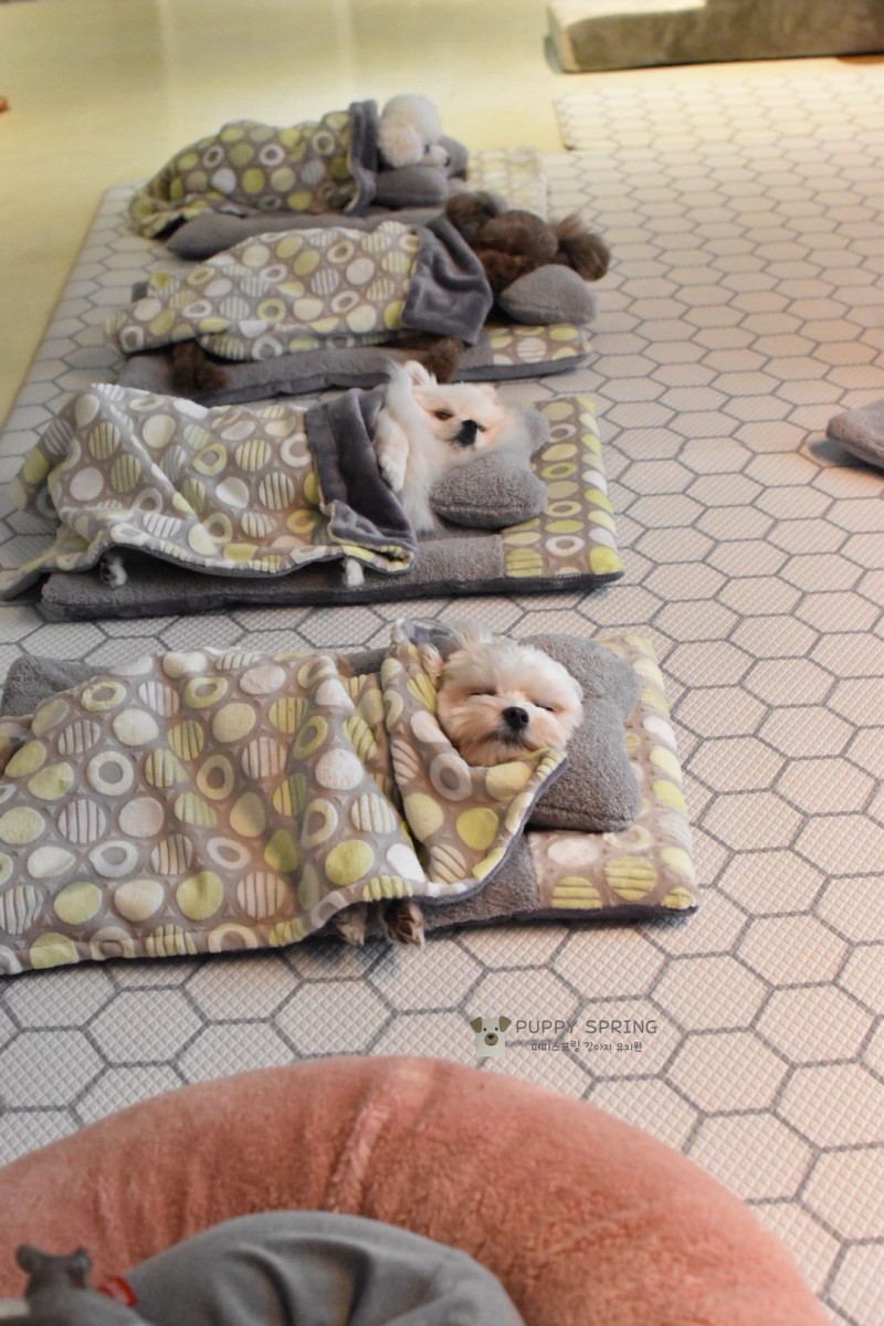 我們小時候上課會有吃點心和午睡的時間,但是沒想到連毛小孩也一樣有喔!韓國京畿道一家毛孩訓練中心「퍼피스프링」固定分享學生的日常照片,其中一組「午睡照」更是引起了大家的關注,讓毛孩們都變成網紅了啦!