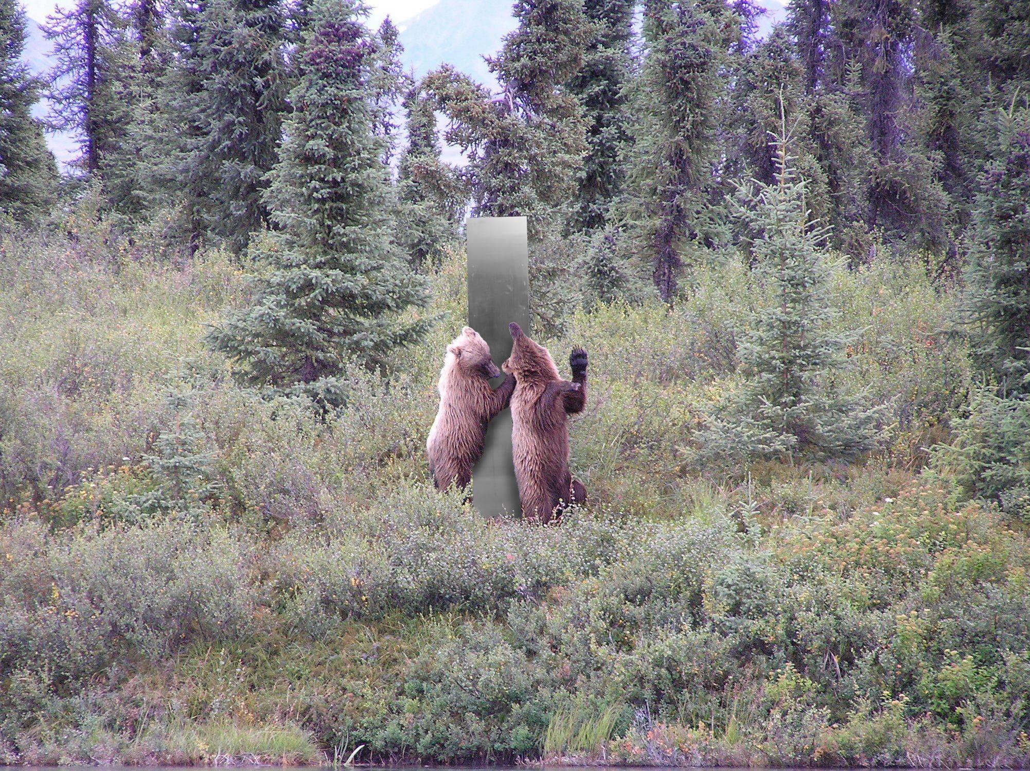 近期在美國和其他國家接二連三出現的「神秘金屬巨碑」引發全世界的關注。美國國家公園管理局(National Park Service,NPS)在官方臉書上po出一張照片,只見兩隻野生熊圍繞在一塊金屬巨碑旁邊,似乎在不停磨蹭。莫非野生動物也對這些神秘出現的金屬巨碑感興趣?
