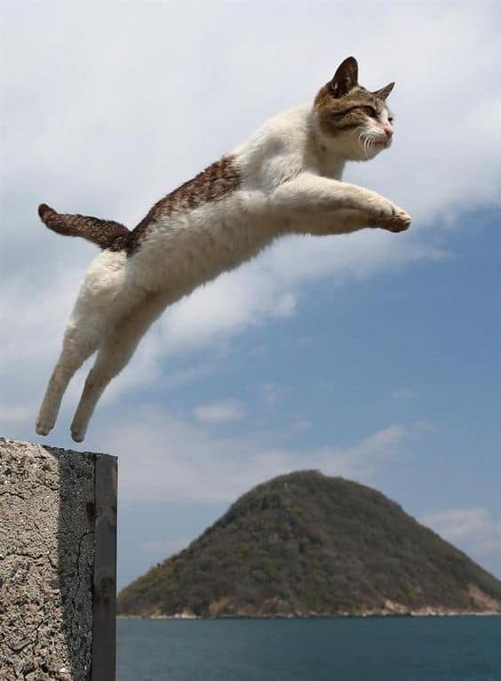 ▼大部分貓咪跳躍時非常帥氣,但也有一些貓咪跳躍時表情蠢萌,好像不太自信,看起來很好笑。