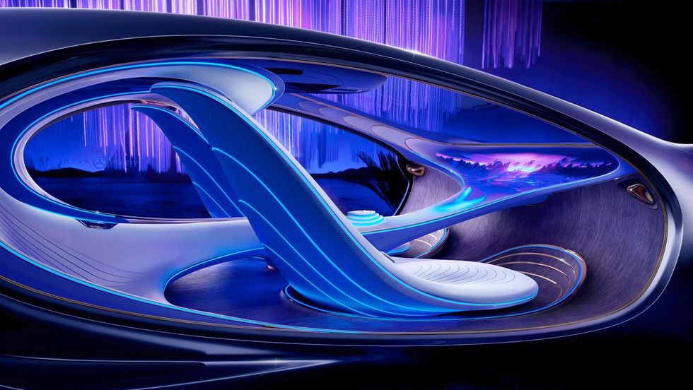 ▼內裝大螢幕的沈浸式體驗:VISION AVTR的儀表板變成了「環繞式大螢幕」,體驗滿滿的近未來科技感。