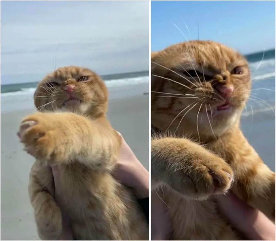 貓咪的脾氣真的大,不管什麼惹到牠,牠都會7pupu~下面這隻叫Pumpkin的橘貓就陰晴不定,心情比天氣還預測不到。平時Pumpkin很喜歡外出散步,主人也會帶牠去外面玩。不久前主人帶Pumpkin和家中的另外一隻貓去海邊散步,這是牠們第一次看到大海。