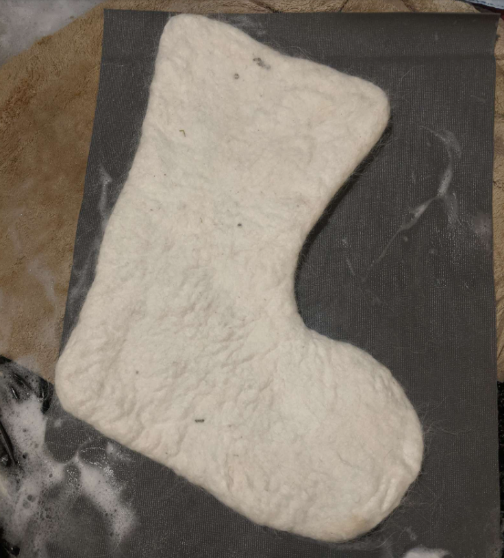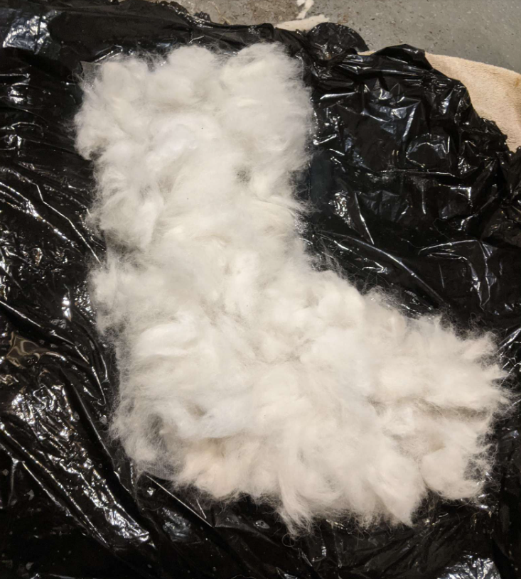 ▼Soleil說:「Nimbus掉毛的量非常多,我覺得可以收集起來做些小東西,比如做成毛氈之類的紀念品,送給喜歡Nimbus,又不能經常見到牠的親友。」Soleil的朋友Charlotte Lake很擅長手工藝,她建議可以用這些狗毛來做一雙靴子。Soleil覺得很有創意,於是將一些收集好的狗毛寄過去。