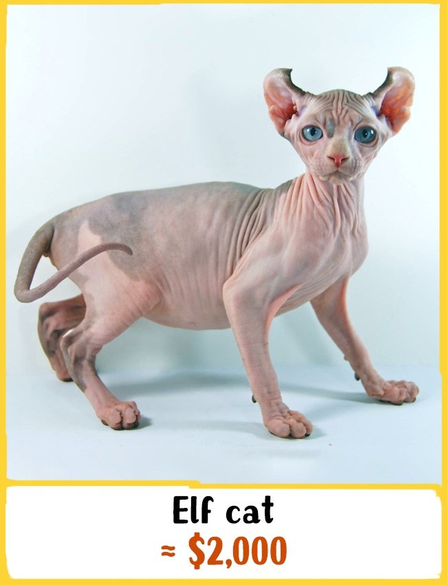 ▼10. 精靈貓。這個年輕的貓品種2006年才在美國發展起來。這些小精靈是非常友好,聰明的。牠們的價格為60000新台幣。