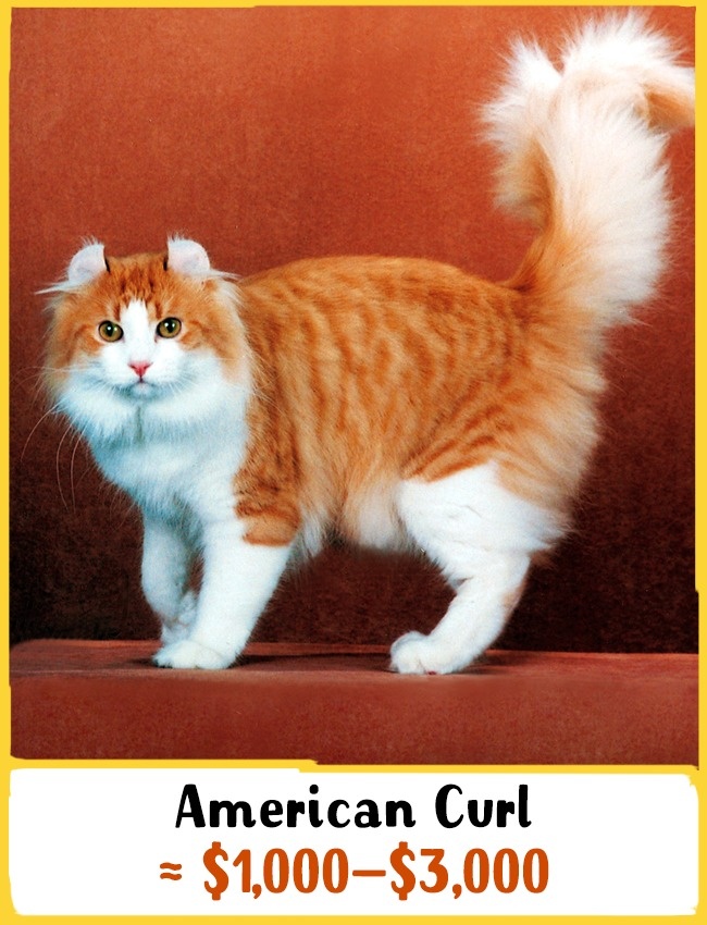 ▼11. 美國捲曲貓。這種品種於1981年在加利福尼亞開發。新生兒的小貓早在牠們出生的第十天,耳朵就開始像小喇叭一樣回轉。牠們的價格為30000至90000新台幣。