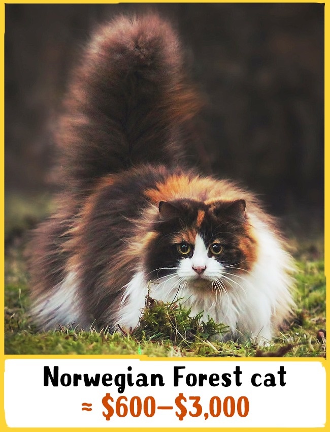 ▼1. 挪威森林貓。這隻貓的祖先是2000年前由維京人養殖的。這種貓可以忍受嚴酷的霜凍,小貓的價格從18000到90000新台幣不等。