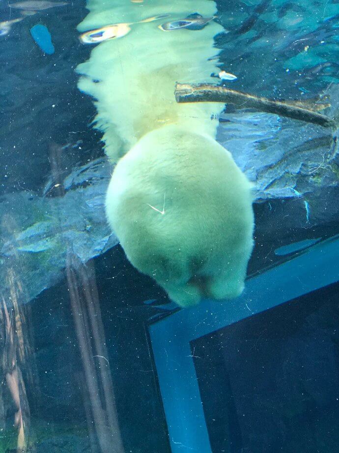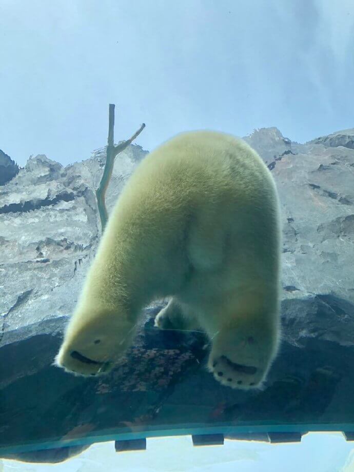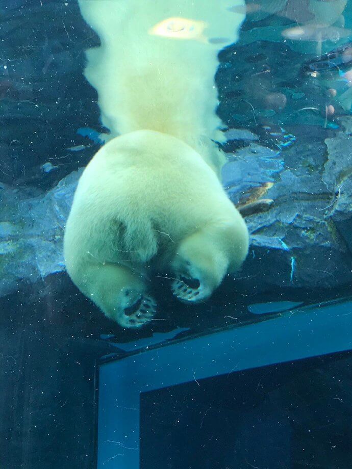 ▼原來這名網友在水族館的海底隧道中,發現了正坐在玻璃上方的北極熊,從這個角色來看北極熊是不是別有一番風味呢?