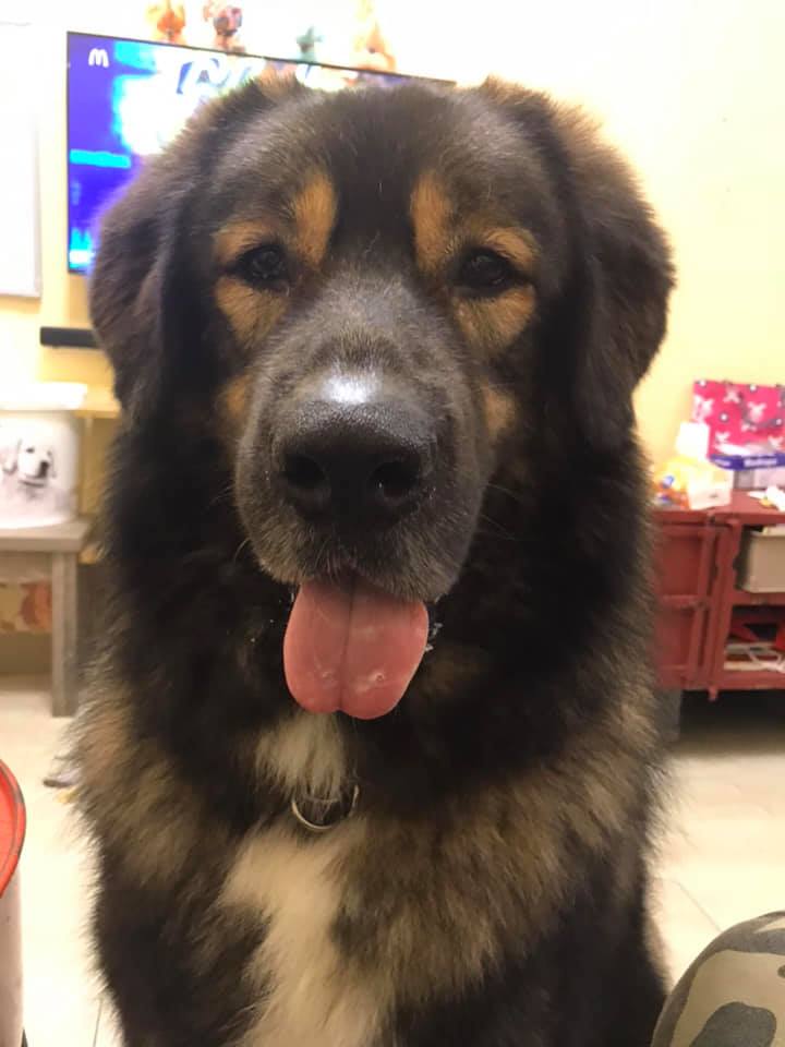 ▼這位就是貼文內的苦主,可愛的「蒜頭」。牠是一隻體型非常巨大的高加索犬,站起來時可以跟成人一樣高呢!