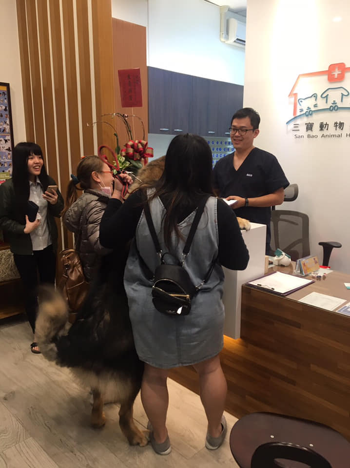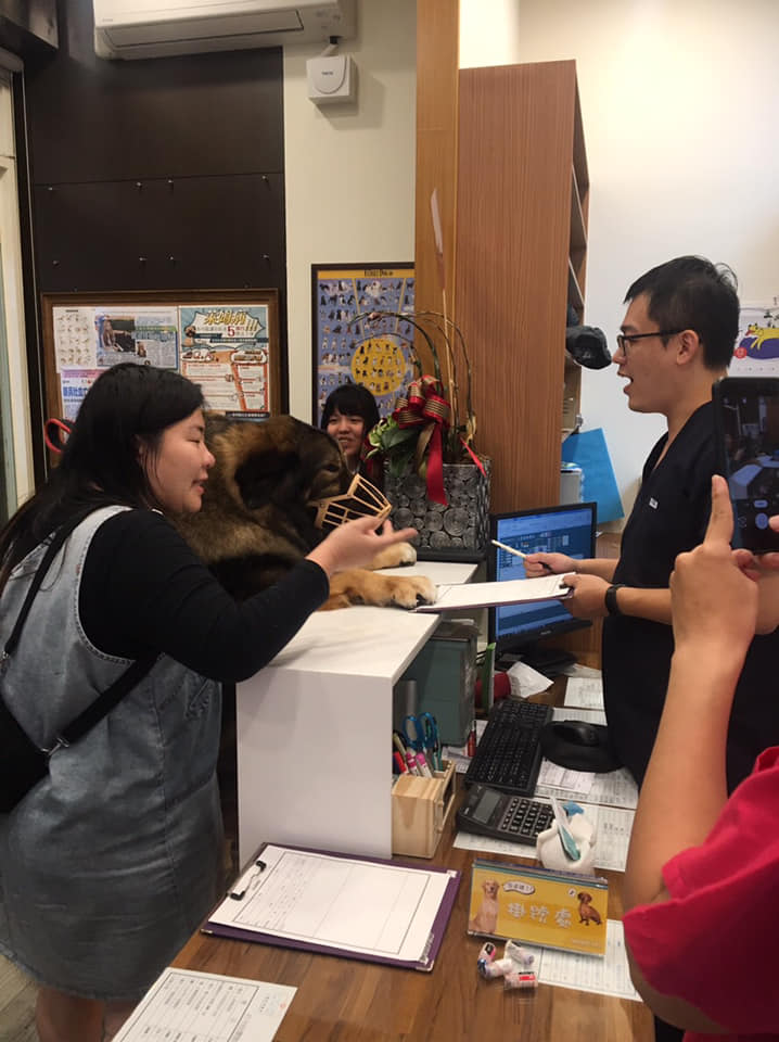 ▼站在櫃台內的醫生,也幽默地跟蒜頭一來一往的鬥著嘴,引得旁人哄堂大笑。這年頭醫師不好當,就連毛孩和獸醫之間都有醫療糾紛了啦!XD