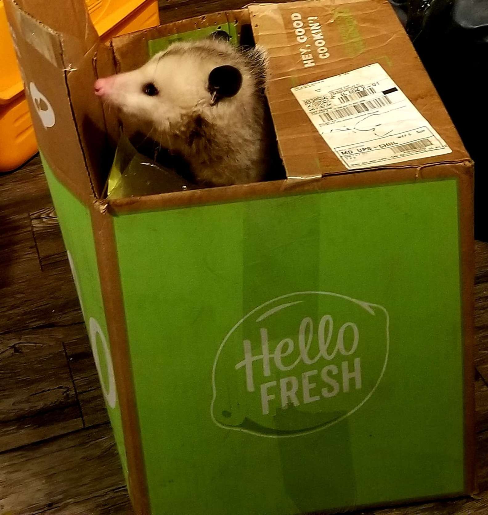 ▼那是一隻胖乎乎的負鼠,牠從Dust家門前經過時發現那裡有一箱美味的食物,於是開心鑽進去大吃特吃。等Dust準備去拿食材時,負鼠已經吃飽喝足了。她笑說:「牠看起來吃得很滿足,毫無疑問,牠真的很懂得把握機會。」