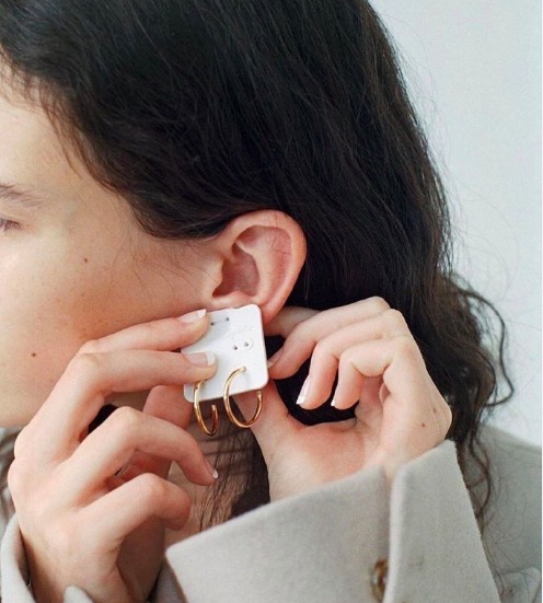 ▼商家通常會把耳環卡在小紙板上,方便顧客挑選。SSENSE設計的這款耳環也是一樣,但妳不用將耳環從紙卡上取下來,直接戴到耳朵上就好了。