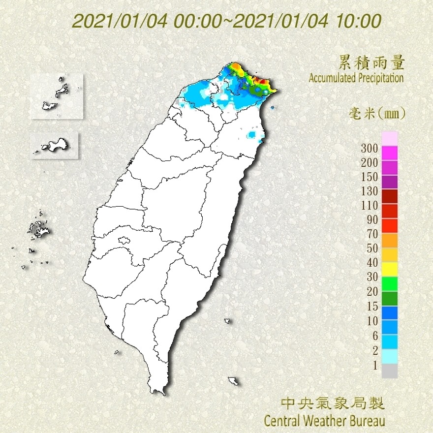 2021年01月04日這幾天冷空氣持續減弱,各地氣溫明顯回升,白天舒適、早晚微冷。今天水氣增多,早上中央氣象局還發布大雨特報,指出基隆北海岸和大臺北山區有局部大雨發生的機率。最新歐洲中期預報中心模式模擬顯示,週四(7日)會有另一波「強冷空氣」南下。