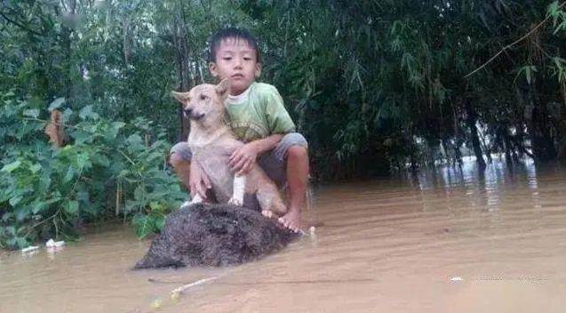 2021年01月06日狗狗能給人帶來快樂和希望~下面這名小男孩的家鄉突發洪水,很多房子都被淹沒了。小男孩抱著家中的狗狗逃生,他們坐在一塊露出水面的大石頭上,這塊石頭剛好能夠容納他們兩個。小男孩抱著狗狗,在大石頭上等待救援,那畫面非常感人。