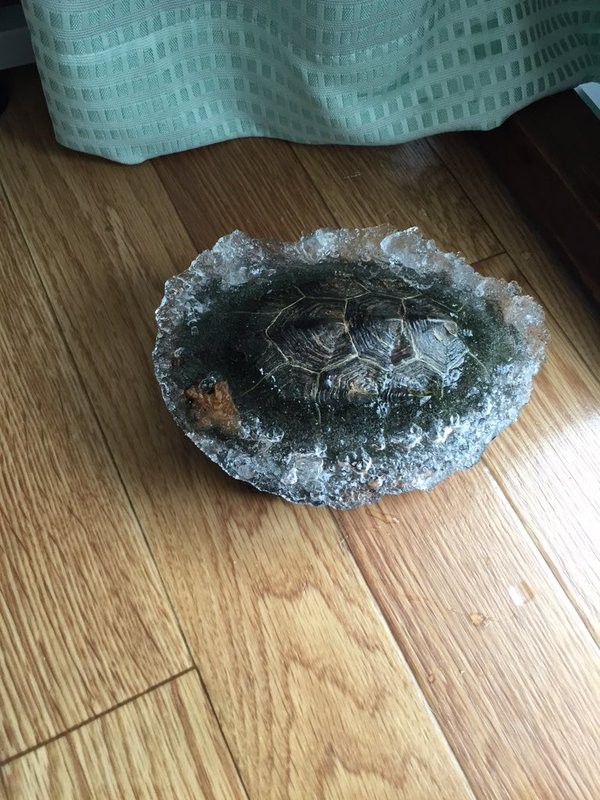 嚴寒的威力真的是不容小覷,能夠將烏龜直接變成冰磚,幸好龜龜在解凍後已經沒有大礙了!大家在寒冷的天氣裡注意保暖的同時,也要照顧好寵物哦!