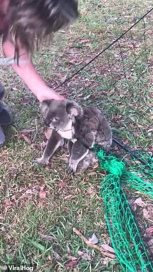 ▼好心人拯救被尼龍網纏住的無尾熊: