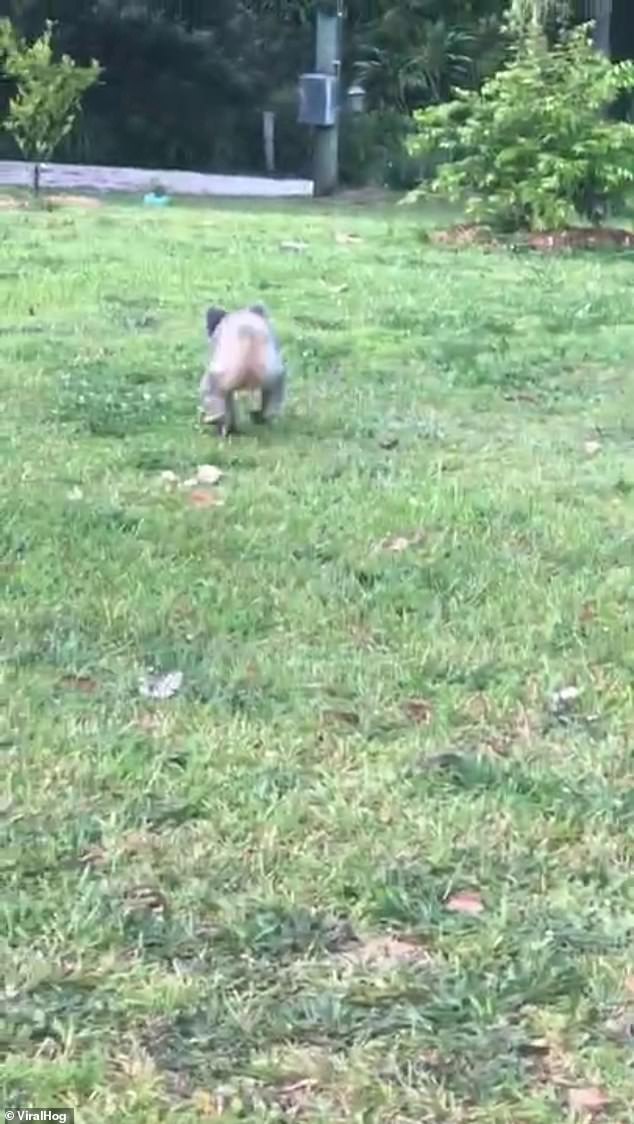 ▼無尾熊似乎聽懂了女子的話,被解救的過程中一點也不驚慌。女子將纏繞在無尾熊手臂上的尼龍網剪開後,牠抬頭看了看,還伸展了一下手臂,好像不太舒服。全部束縛都被解除後,牠爬出去跑向了附近的灌木叢。