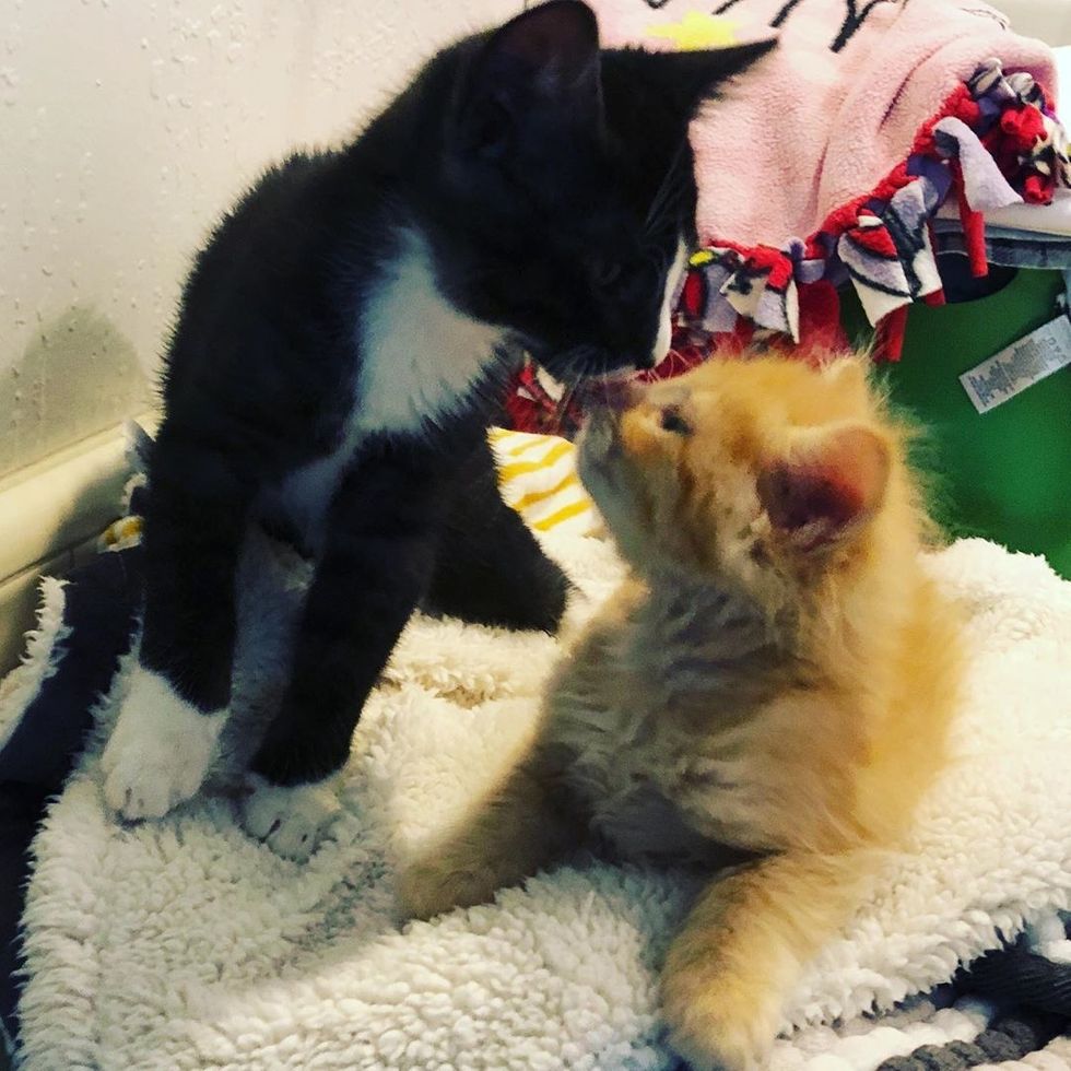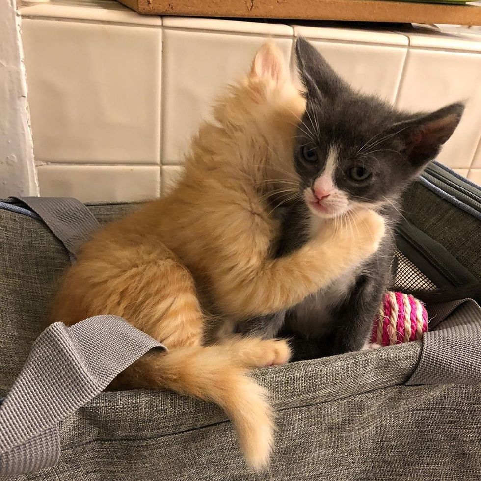 孤兒小浪貓獲救後「秒變黏黏貓」 整天「抱抱饋羞」照顧同伴:我們都不孤單~