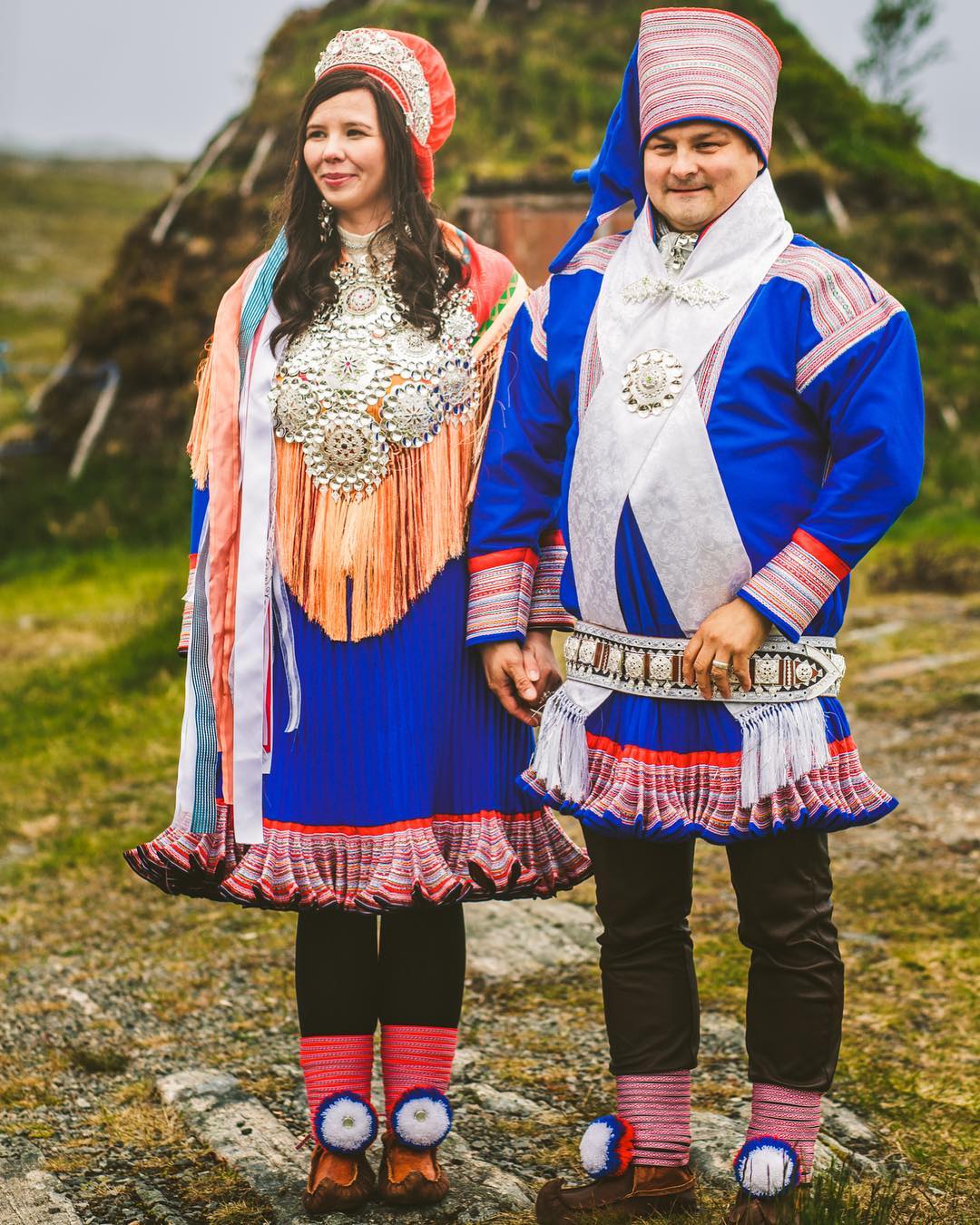 ▼挪威:傳統的婚禮禮服名為「bunad」,上面有銀色的裝飾,也有驅散惡靈的意思。
