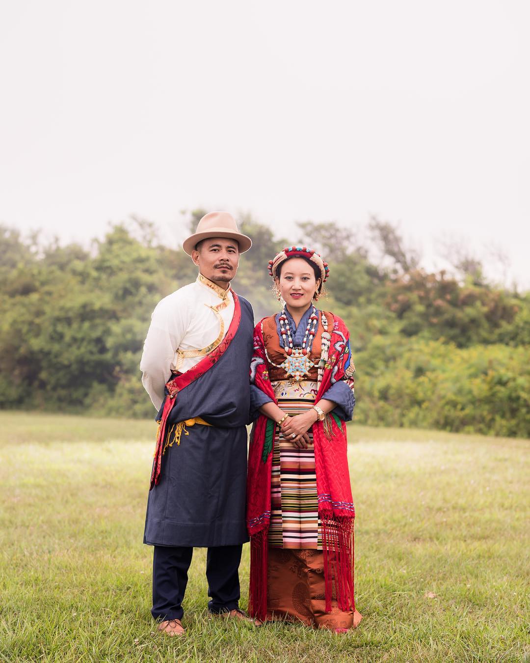 ▼西藏:新郎為新娘準備婚紗和飾品,飾品包括頭飾、辮子上的小裝飾,或帶有佛像的護身符。