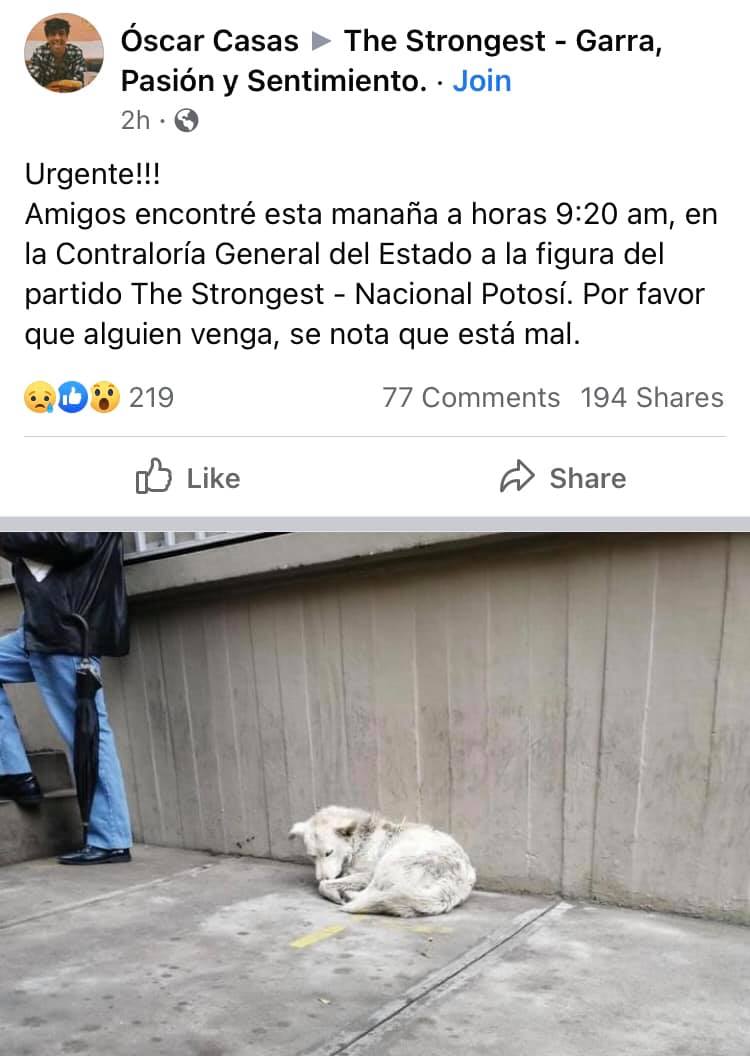 2021年01月13日每一隻狗狗都值得被好好照顧!最近玻利維亞普托斯市(Potosi)的一隻狗狗紅遍網路。去年聖誕節時,牠闖入足球賽,在草地上盡情奔跑、玩耍,不願意離開。幾天後牠發生車禍,這悲慘的遭遇引發大討論,牠也因此有了好歸宿。