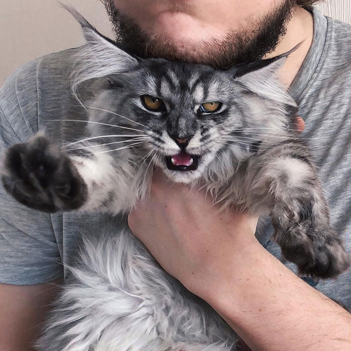 緬因貓成年後體重能達到8kg。牠們擁有厚厚的毛髮,還有巨大的爪子,能在雪地上行走。這種高貴的大貓咪很適合當寵物,收穫了很多人的喜愛。