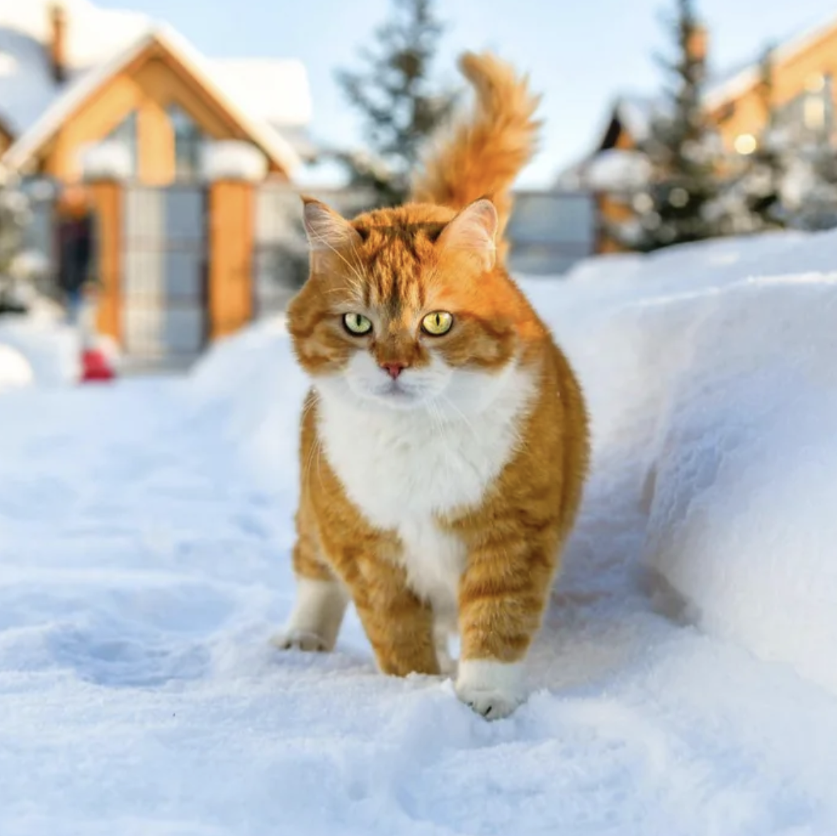 ▼Ginger是一隻胖橘,但行動很敏捷。牠閒來無事就會到雪地裡玩耍、散步。牠在雪地裡奔馳的模樣非常霸氣,不過搭配牠圓圓的身材,總是能讓人聯想到萌萌的玩偶。