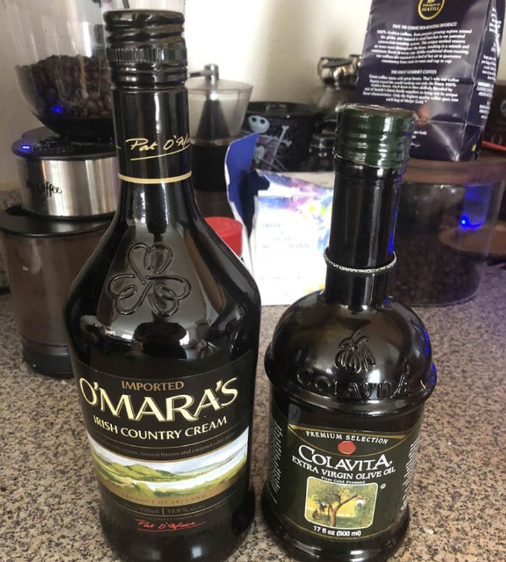 ▼本來想喝貝禮詩奶酒,最後倒錯成橄欖油。