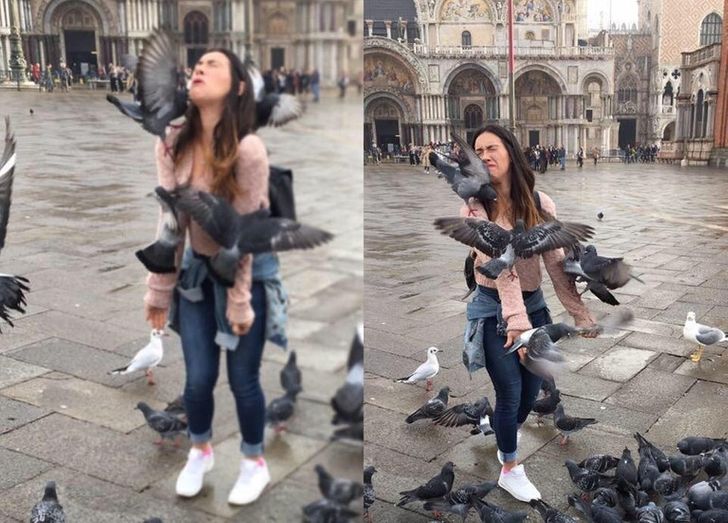 ▼本想在廣場餵鴿子,結果秒幻滅。