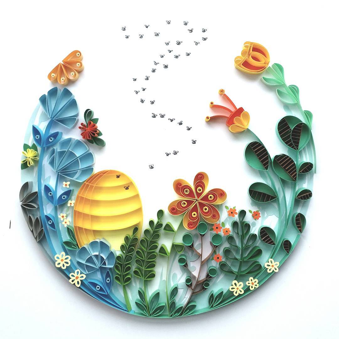 ▼另一位英國捲紙藝術家Meloney Celliers除了捲紙之外,還會透過繪畫的方式,妝點作品,使整體變得更加完整,作品風格相當溫暖和諧。