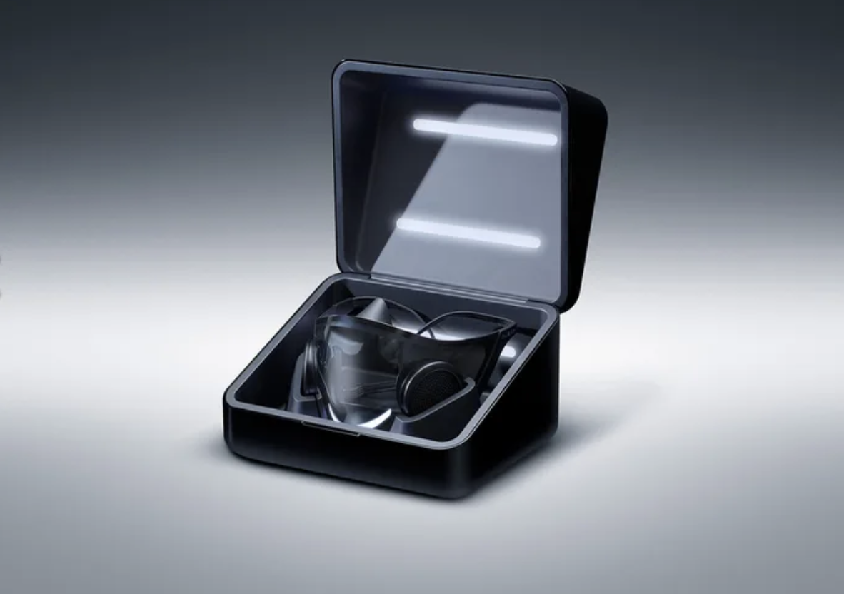 ▼「Project Hazel」附帶一個精緻的收納盒,收納盒能夠幫口罩充電,同時還有紫外燈消毒功能。