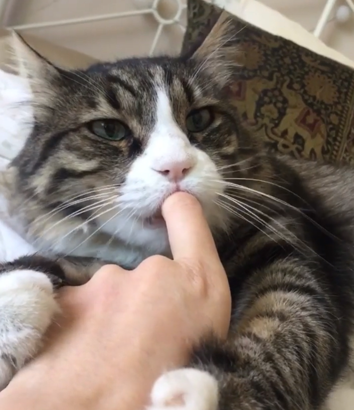 ▼IG網友@fataliciousromeo家的貓咪名叫Romeo,牠每次想要尋求安全感和依賴感的時候,就會將奴才的手指當做奶嘴吸,雖然現在牠早已長成大貓咪了,還是經常鎖定奴才的手指,然後一臉癡迷的大力吮吸。