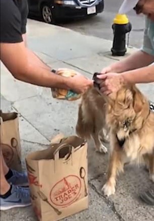 2021年01月16日狗狗對食物真的很執著!日前一名男子到超市買麵包,出門時遇到了一隻叫Murphy的黃金獵犬。Murphy一下子被男子手中的麵包吸引,緊緊咬住包裝袋不放開。這搞笑的一幕被拍攝下來po到網路上,網友們都笑翻了。