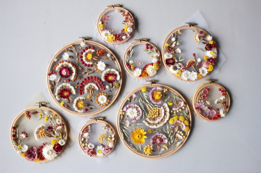 ▼一開始Olga使用鮮花來製作,但是很快她發現鮮花在做成刺繡以後,會隨著時間凋零縮水,圖案也會隨之變形,於是她開始改用乾燥花來創作,結果發現,效果超讚!