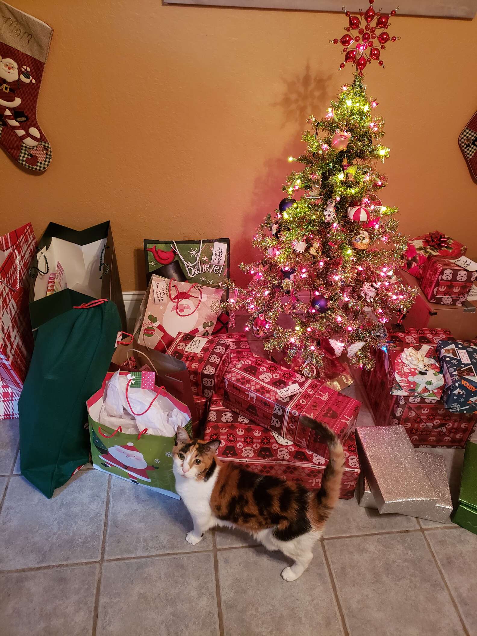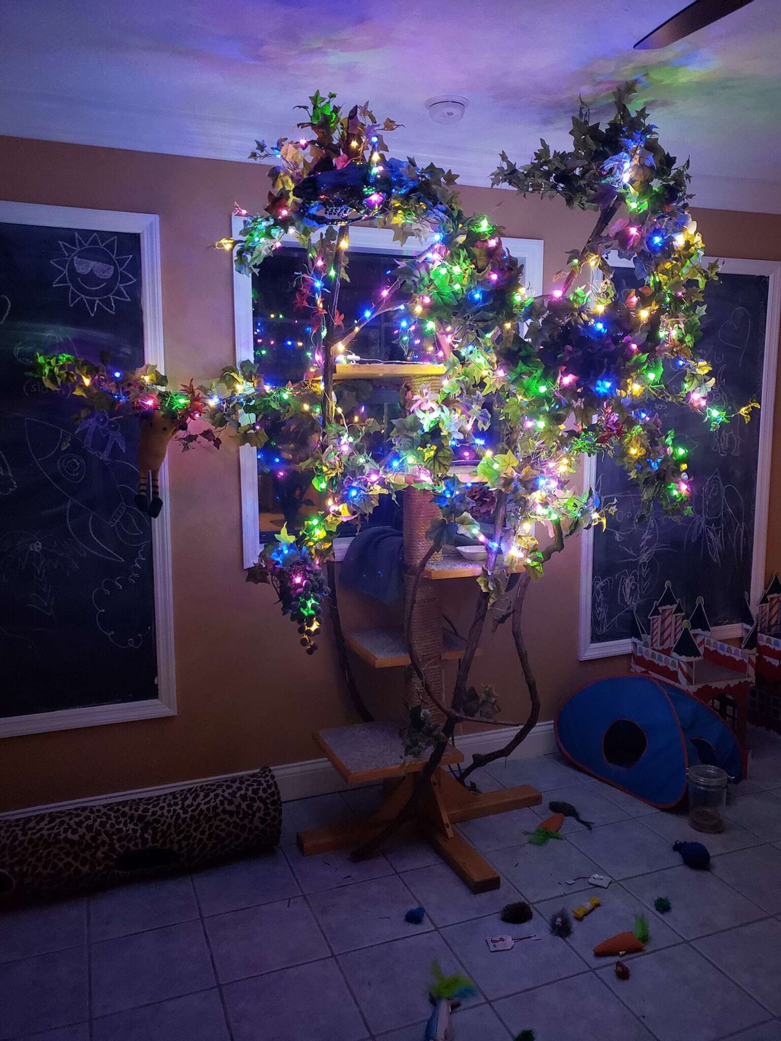 Luna已經到了安享晚年的年紀,把拔馬麻為牠營造了超棒的養老環境。牠能24小時待在聖誕樹上,看著自己最愛的彩燈,這就是Luna幸福的天堂呀!
