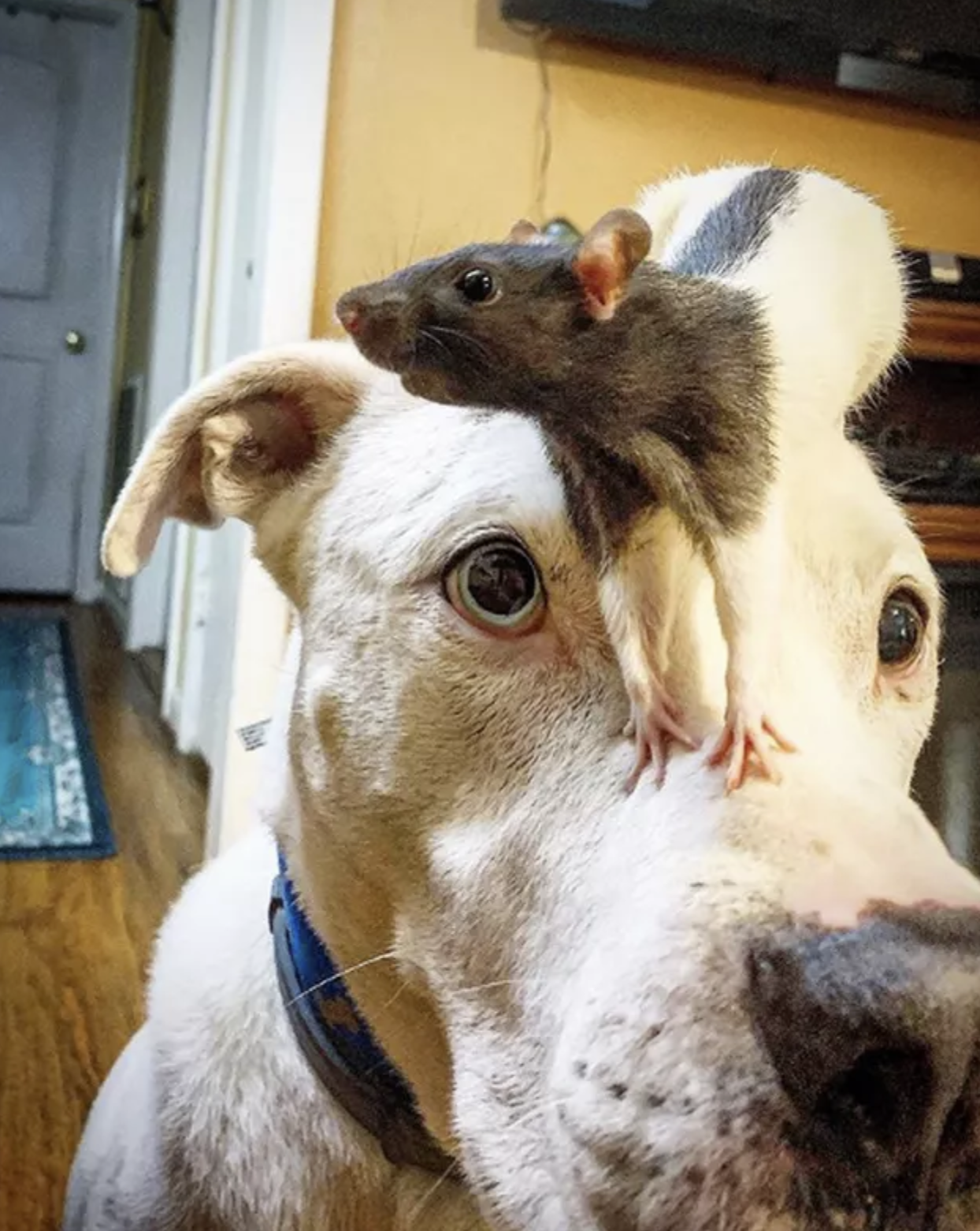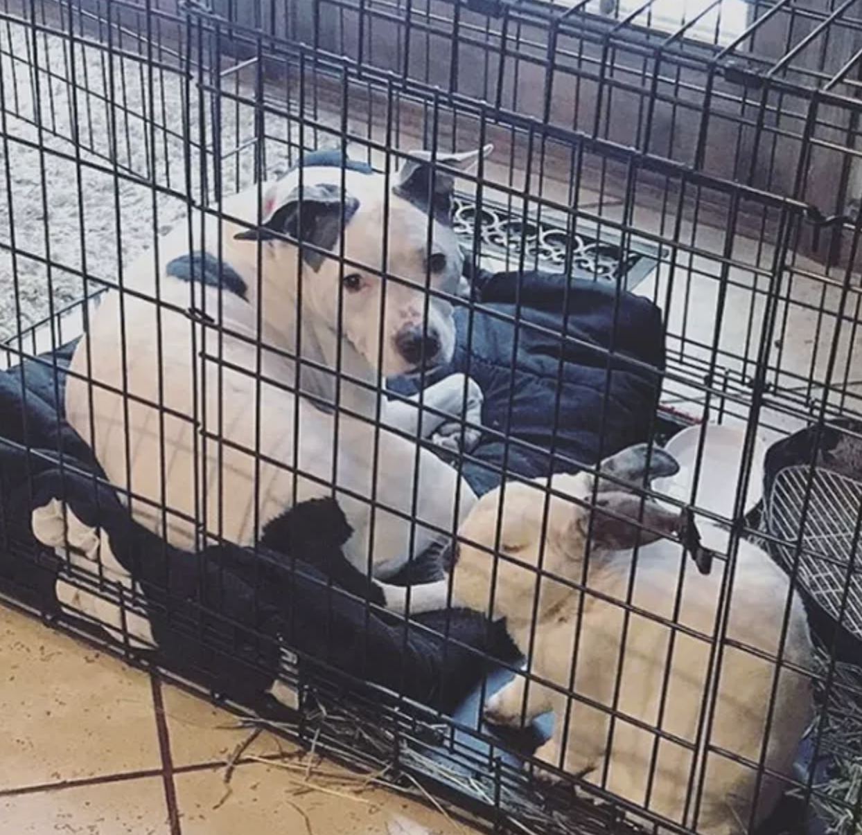 ▼狗狗和兔兔住在一起。
