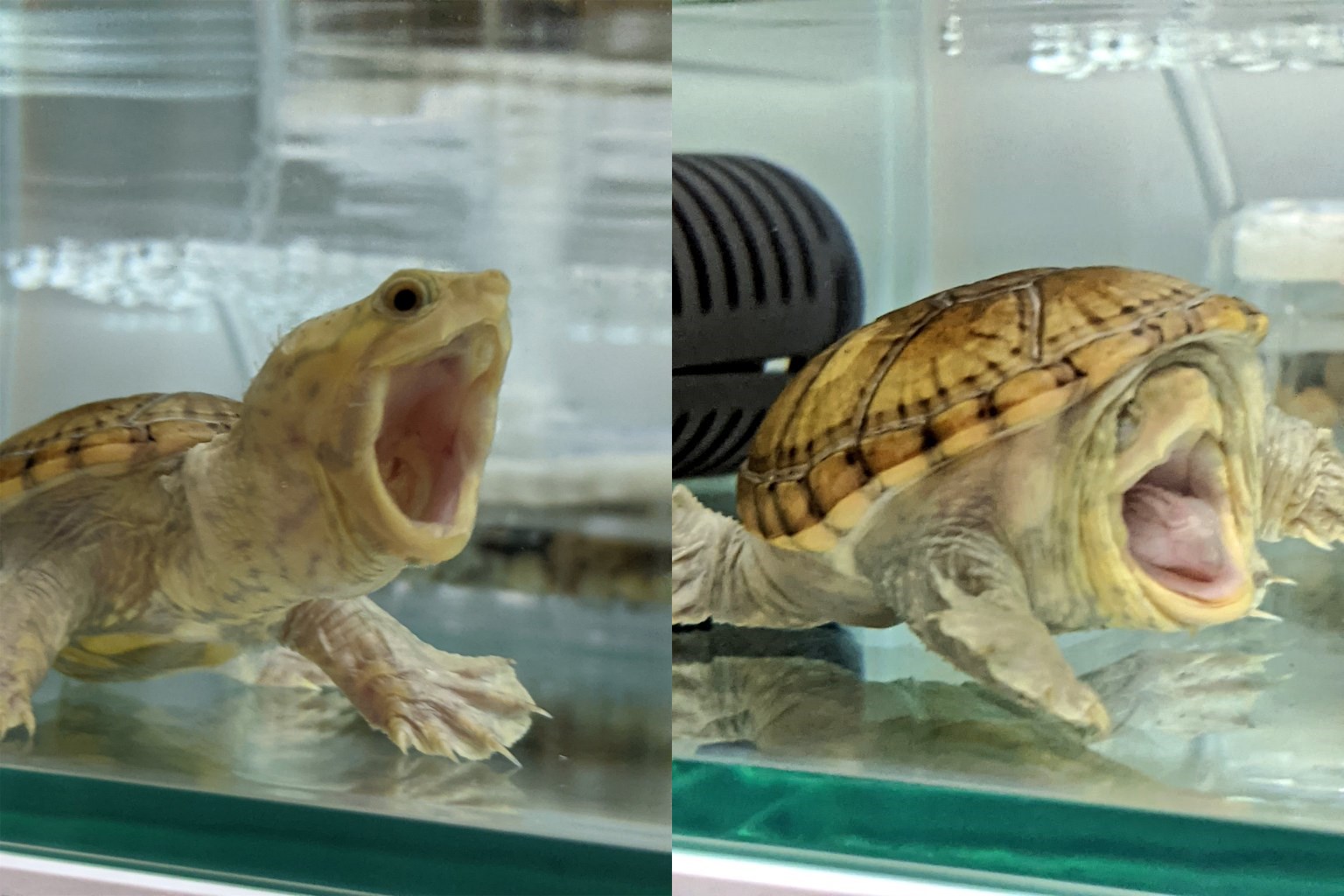 內建表情包?龜龜被相機嚇到「下巴掉下來」 浮誇臉網友笑噴:誰攻擊你的水缸?