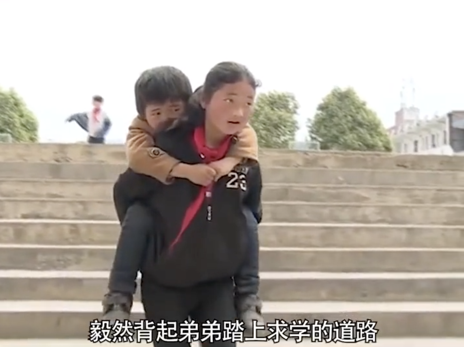 2023年07月12日這位姊姊太堅強了!大陸有一名叫羅薇的12歲小女孩,她的弟弟患有先天性肌肉萎縮,無法活動,也不能去上學。羅薇知道弟弟渴望上學,就主動背著他去學校,在學校中也事無巨細照顧弟弟。她說:「只要弟弟想讀書,我就會一直背著他!」