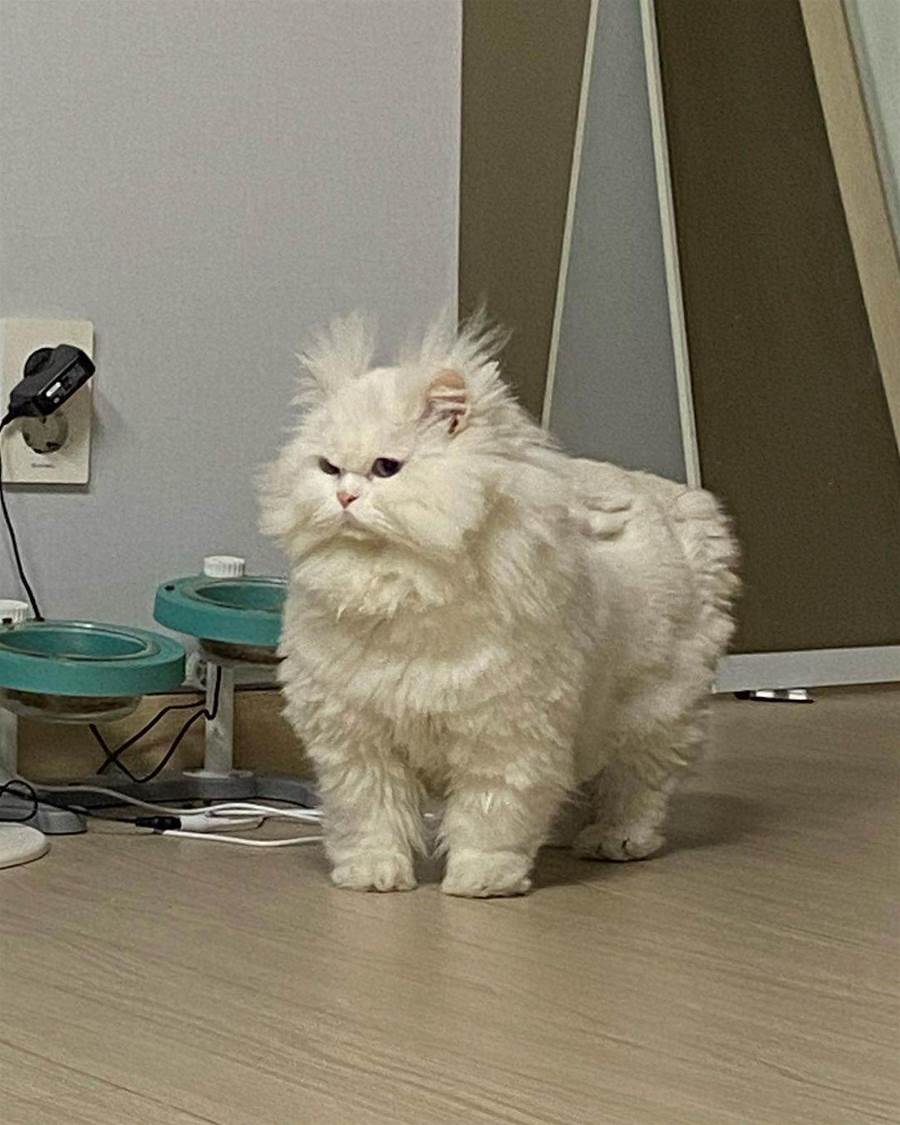 ▼主人曾問過醫師,為什麼Malsook的毛髮那麼多呢?醫師說,貓咪中有一種叫做「甲狀腺機能亢進症」的病,這會導致貓咪體重減輕、毛髮蓬亂。但Malsook的體重沒有減輕,可能不是這種疾病的原因。