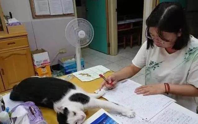 ▼最後老師喜歡上了這隻聰明的貓咪,決定收養牠。老師用食物將妹妹頭引誘進籠子裡,這讓妹妹頭很驚嚇,但看到熟悉的孩子們後,牠逐漸卸下心防。一個星期後,妹妹頭不再排斥老師,老師才將牠放出來。現在妹妹頭整天在補習班裡自由活動,還會陪孩子們上課,就像一位特別的學員。