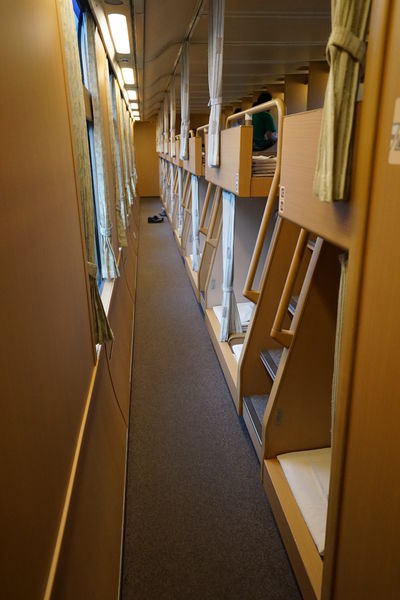 ▼サンライズ號最熱門的,一定就是第五節的Nobinobi (ノビノビ座席)了!這裡是大通鋪式的臥鋪,價格也最便宜,每次都是最快被搶購完畢的。