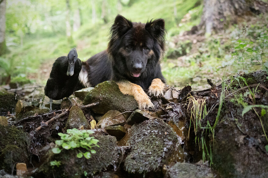 2021年01月28日我們看到過不少動物之間跨物種的友誼,在業餘攝影師Natacha家裡,就有德國牧羊犬Vendetta,印度跑鴨Lemony,還有兩隻鴿子Grisella和Heldig,奇妙的是,牠們都是親密無間的好朋友,一起出鏡時如童話般美好的畫面總是能夠融化人心!