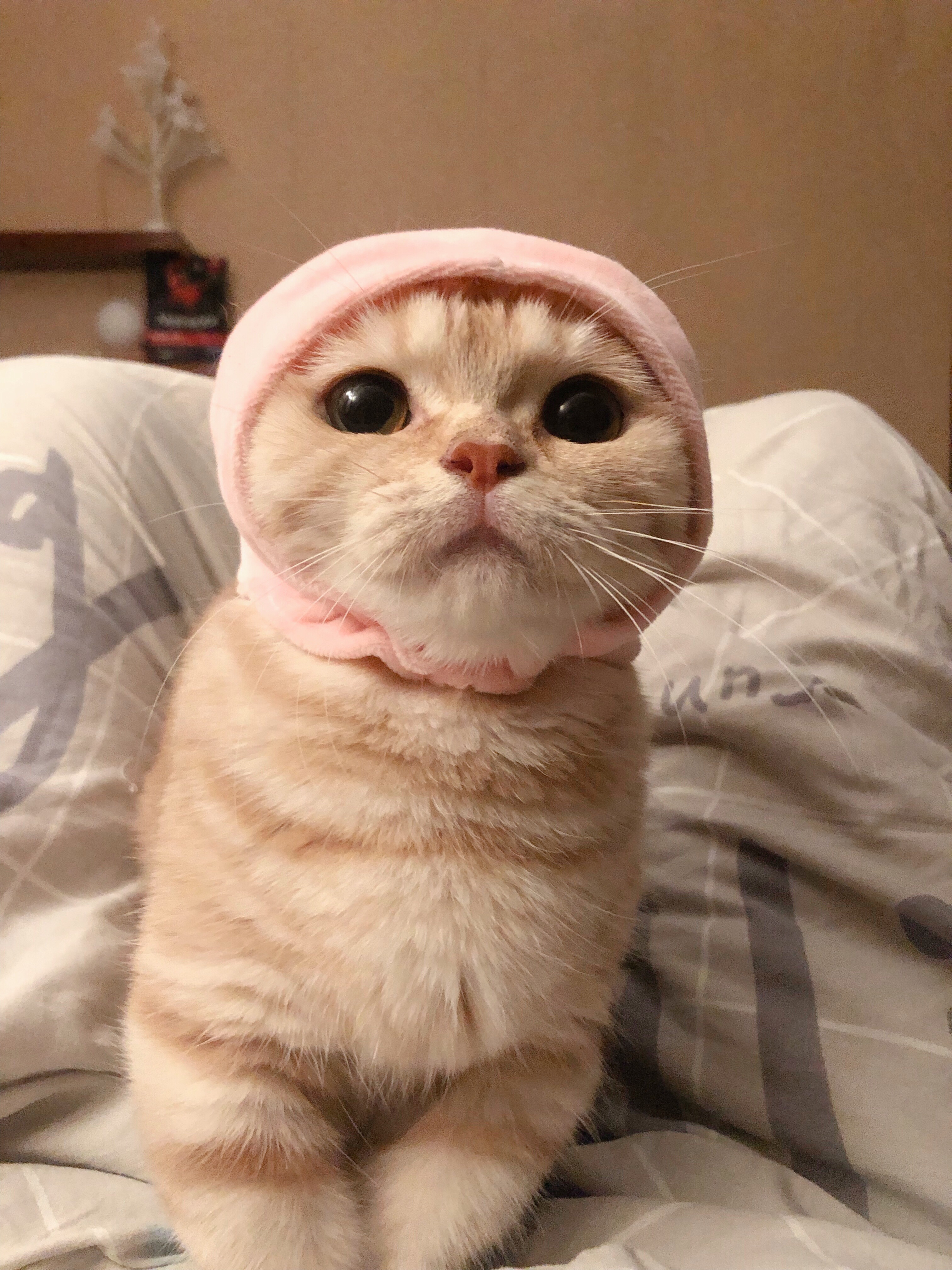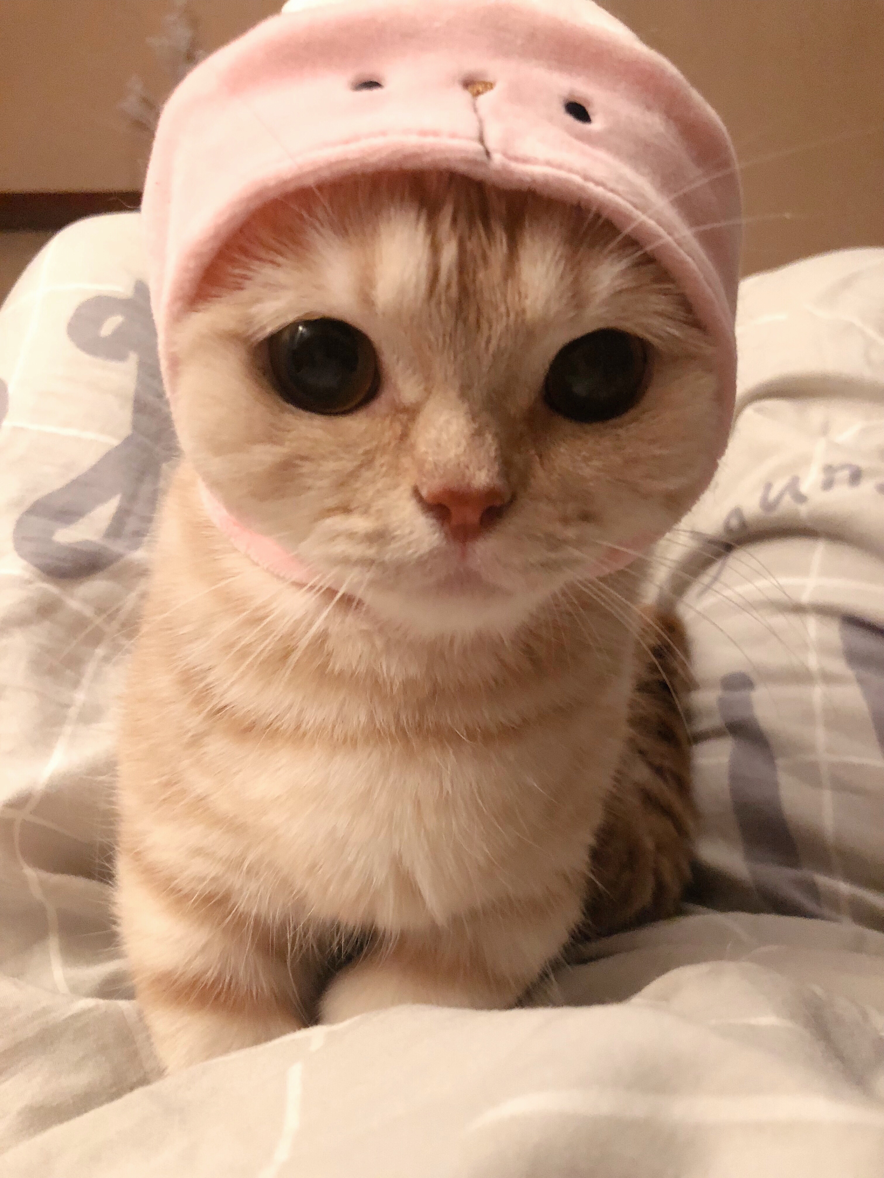 ▼這隻小萌貓戴上拉拉熊風格的帽子太合適了。
