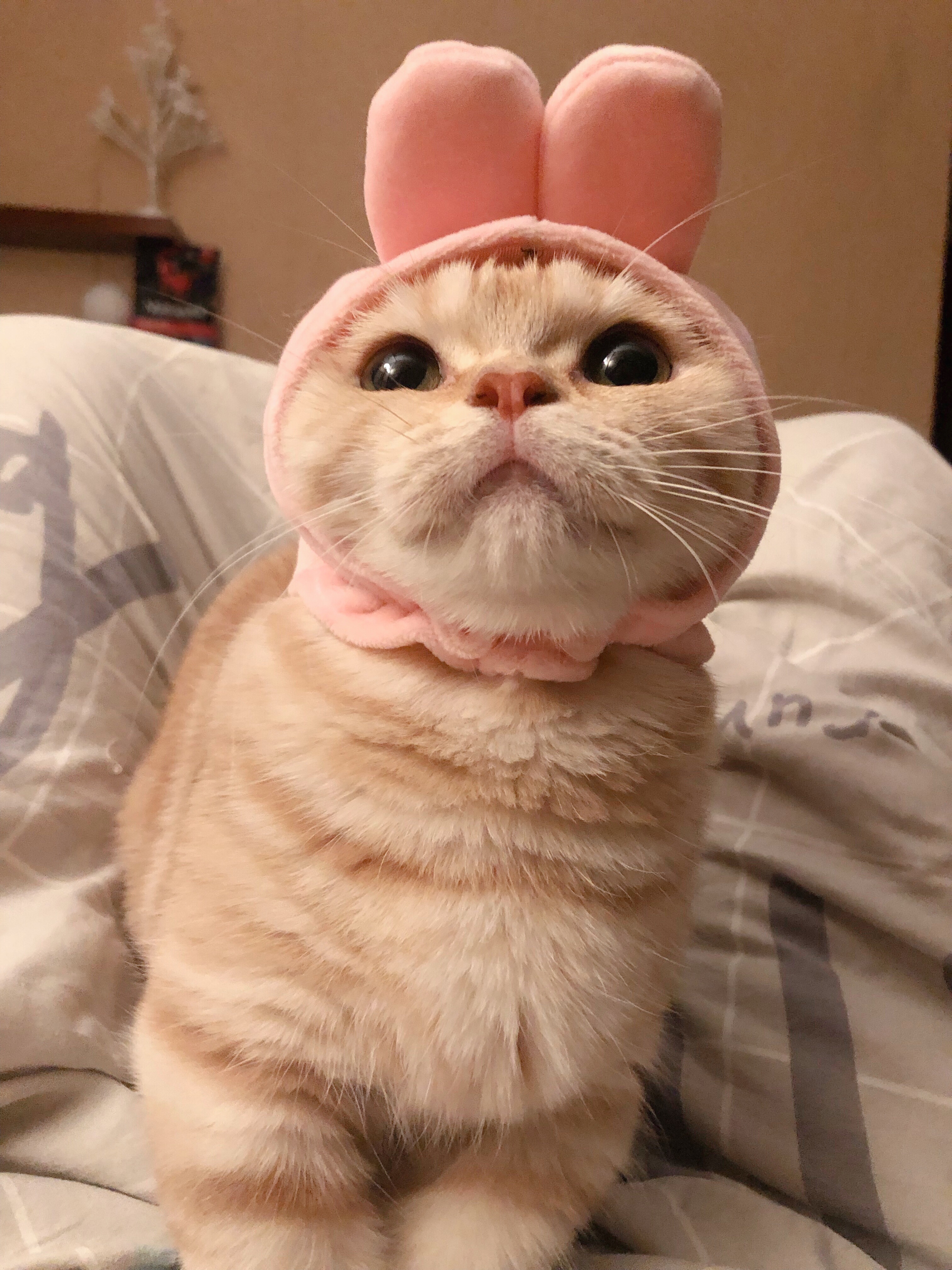 ▼牠能夠完美駕馭所有可愛風格的道具,今天牠是一隻粉紅色的小兔子。